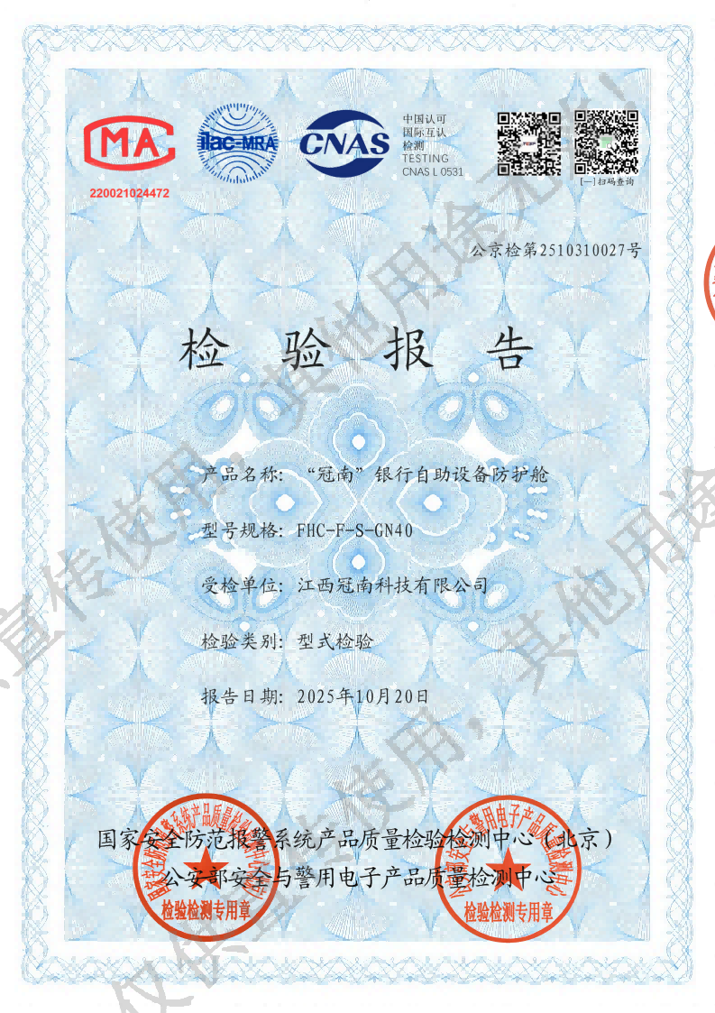 “冠南”银行自助设备防护舱