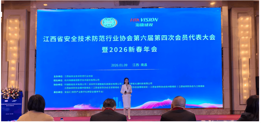 江西省安防协会于2026年1月9日下午在南昌凯美大酒店二楼凯美厅召开“第六届第四次会员代表大会暨2026新春年会”,盛会同步开展了2025年度优秀安防工程(产品)企业表彰、颁奖仪式。 会议现场